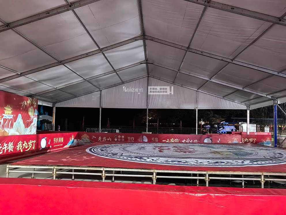從山路運輸的艱難跋涉,到趕工搭建的日夜堅守,再到陰雨天氣的持續保障,三門峽篷房出租用專業與擔當,為老君山九周年慶的1元午餐區撐起了一片“晴天”。這座白色人字形篷房不僅是一處功能性場地,更承載著景區對游客的誠意與關懷。